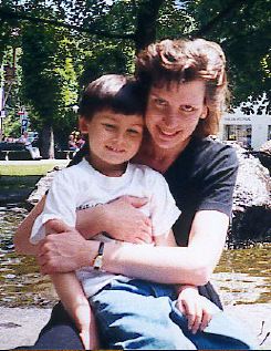 On Friday, May 28, 1999 Kathleen and I departed Philadelphia for a trip to Munich, Amsterdam, and Paris. We flew first to Munich, a city in the Bavarian section of Germany. We arrived on Saturday morning May 29, and we were met by our good friend, Kim. She, her husband, Key (pronounced "Kay"), and her son Raphael were our hosts and tour guides during our stay in Bavaria. Kim brought us to their lovely home and prepared a typical Bavarian lunch with pretzels, mustard, and bratworst. The main meal in Germany is lunch so we were quite full afterwards. Kim and Key were the most gracious of hosts and Kathleen and I hope to return the favor the next time they visit the Philadelphia area. Their son Raphael is terribly charming. He speaks English to his mother and German to his father. He has a great sense of humor and I enjoyed many silly hours together with him. I made a recording of him introducing himself and prepared a file (13 kilobytes) in QuickTime format. Click the button below and the sound file will load in a separate small window.